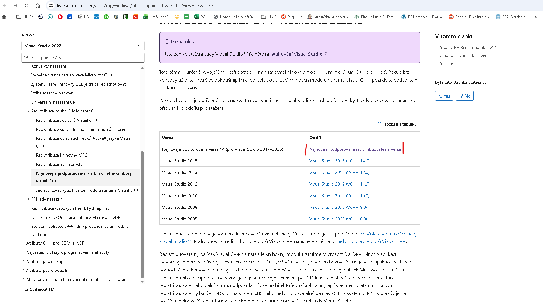 8.klikněte na odkaz MS Visual C++ 2022 Redistributable Package (x64).
